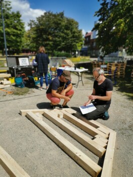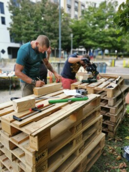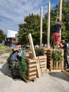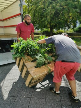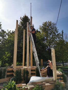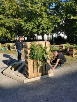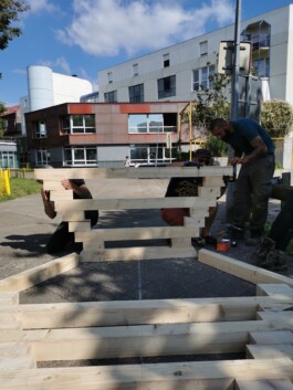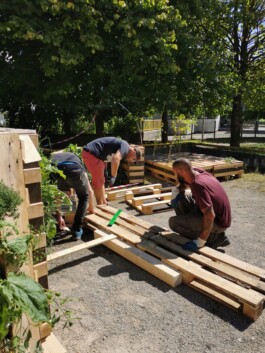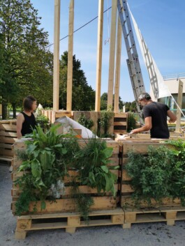 — Construction de 15 bacs de culture à base de palette d'occasion qui permettent de présenter les plantes de manière verticale (juillet)