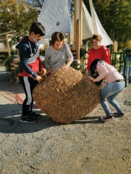 — Chantier 'paille' : transport des bottes de pailles avec des jeunes du quartier (octobre)