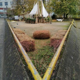 Ju Hyun Lee, arrivée à Besançon pour la résidence/contrat de ville à l'association JUSTE ICI pendant 3 ans dans le quartier Planoise, a imaginé cette sculpture vivante qui nécessite de l'entretien, de l'animation et qui évolue au fil des saisons.