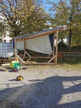 — Construction de l'abri pour la récupération d'eau de pluie (octobre)