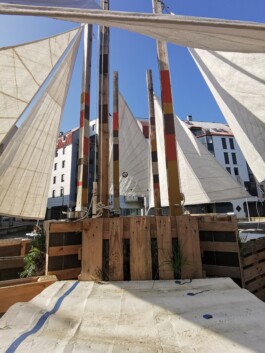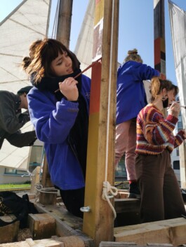 — Montage (septembre) : transport des bacs, assemblage, installation du mât et des voiles.