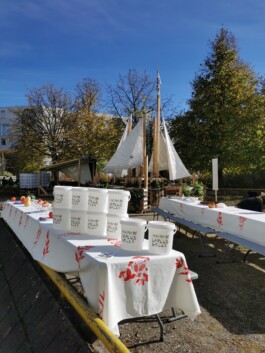 Pour le lancement du COMPOST de la sculpture (27 octobre 2021), une Fête de la soupe a été organisée, en partenariat avec l'association Miroirs du Monde, l’ADDSEA et la Maison de Quartier de Planoise. L'évènement a été l'occasion de cuisiner en plein air avec les aromatiques de la sculpture, mais aussi d'apprendre à s'occuper des déchets alimentaires jusqu'au bout du processus.